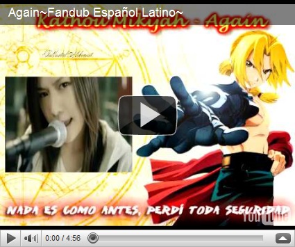 He estado escribiendo durante estos días un One-Shot de FMA basado en el reto “Viaje en el tiempo” de la comunidad de Lj Crack and Roll (De paso decir que en lo que escribo estas líneas todavía no termino con el fanfic en cuestión XD). La canción que me ha animado e inspirado para escribirlo es esta: Again, de Yui, el primer opening de FMA Brotherhood.
